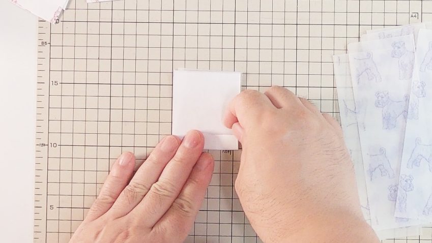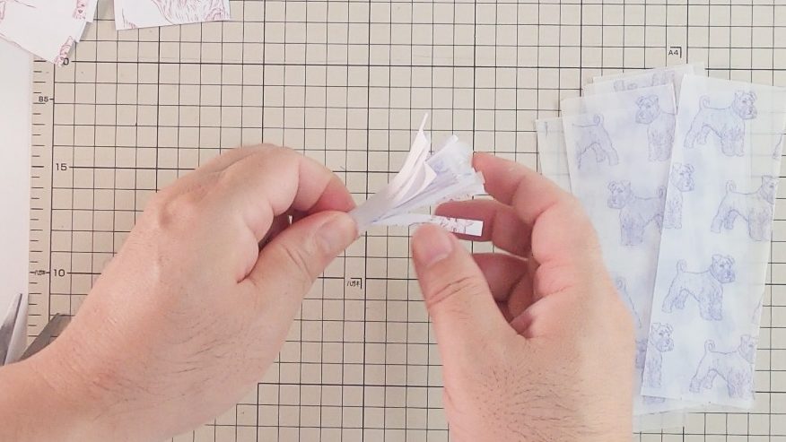 今回は、ヨークシャーテリア&ミニチュアシュナウザーの犬イラスト入りデザインペーパーを使って作っていきます。