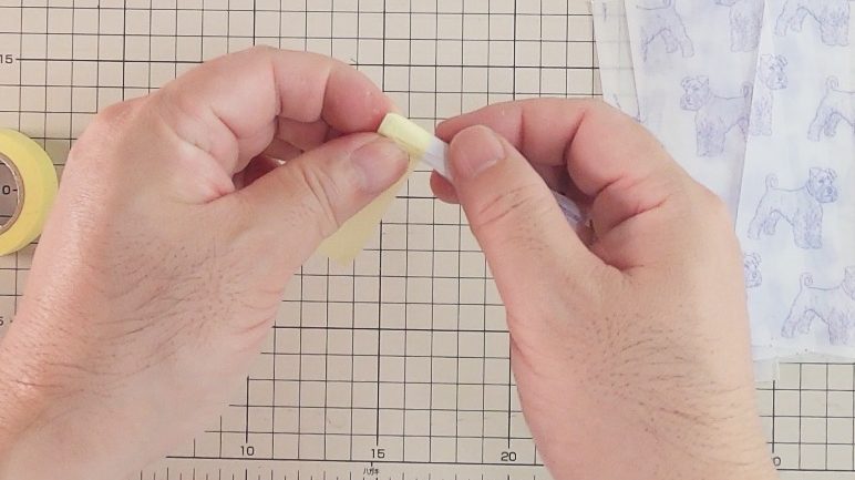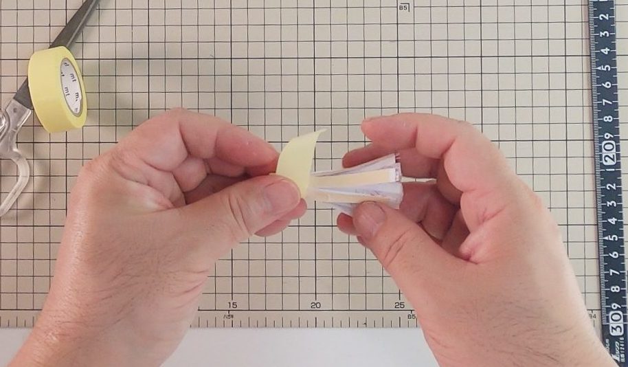 - 海苔巻きのように巻き、根元をマスキングテープで固定。