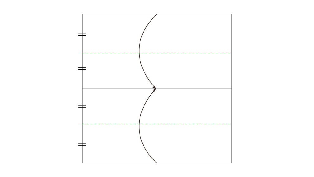 ポイント:横方向に8等分された折り目がつくように意識します。