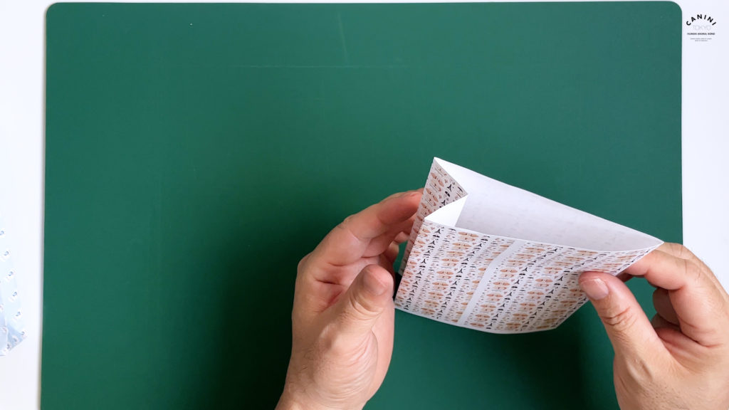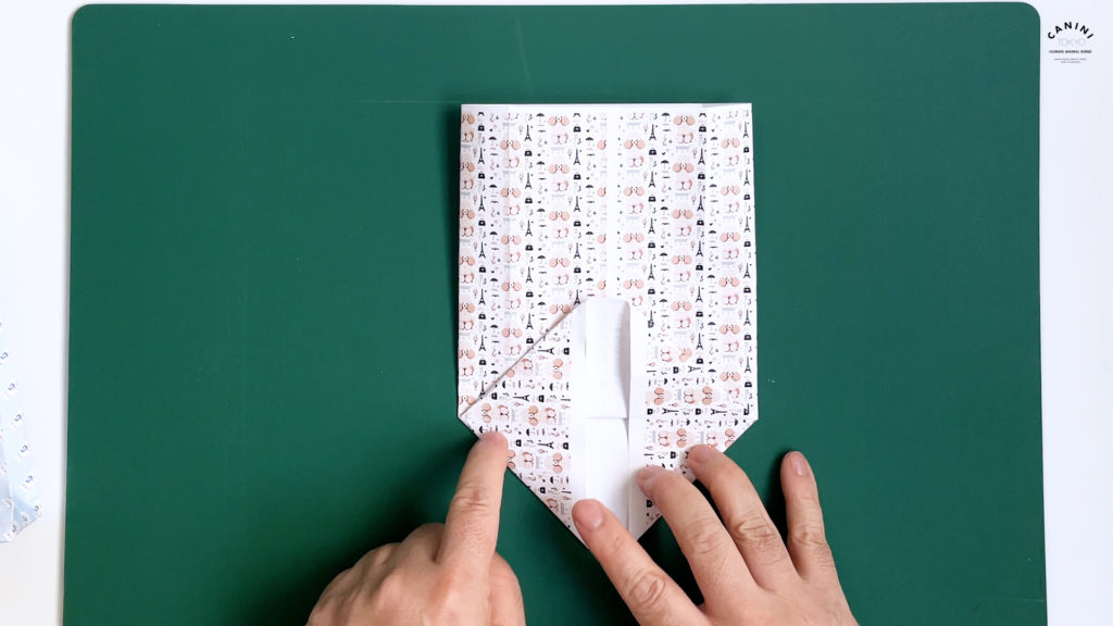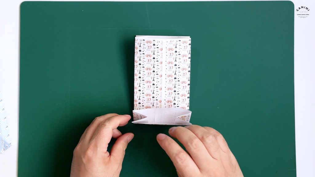 サイドの折り筋に沿って、底に縦の折り目を入れる