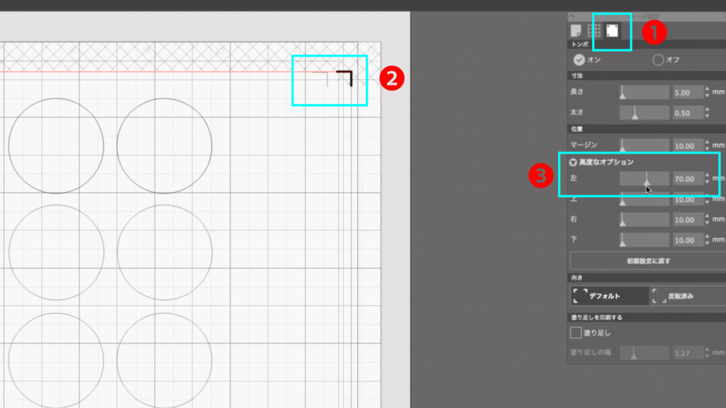 カットする線近くギリギリに文字やイラストは置かないようにします