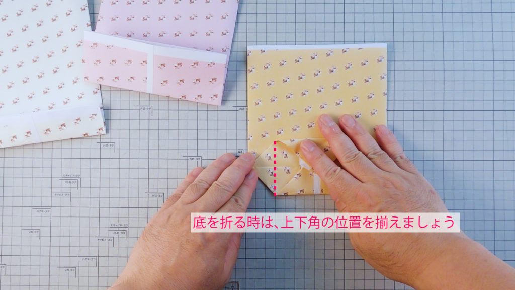 同じ工程で、底の折る幅を変えて作っていきます