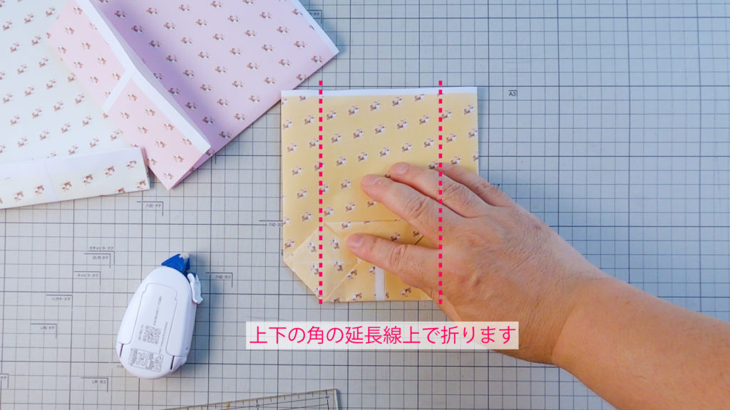 マチ部分を真っ直ぐに折ります