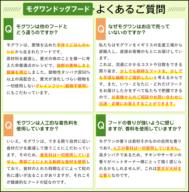 手作り食のレシピに基づき、美味しさと栄養バランスを両立したスペシャルフード「モグワン」の原材料には、以下の特徴があります。