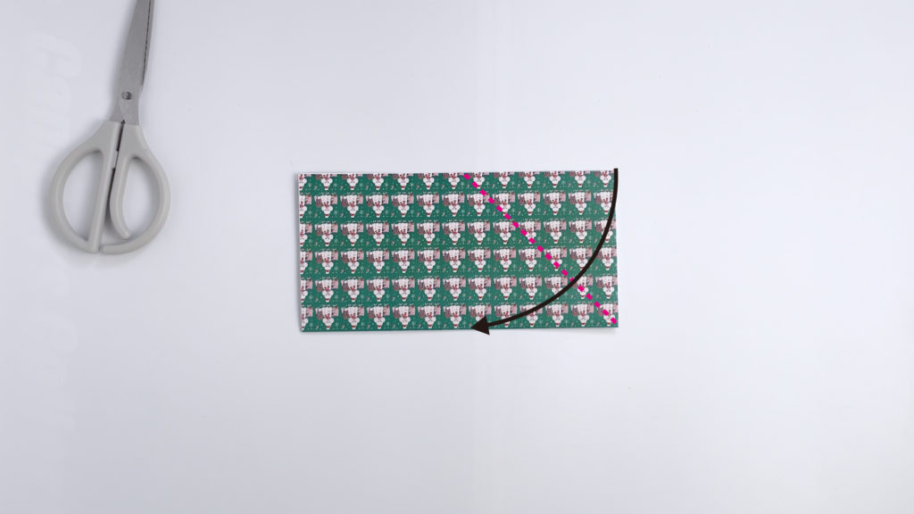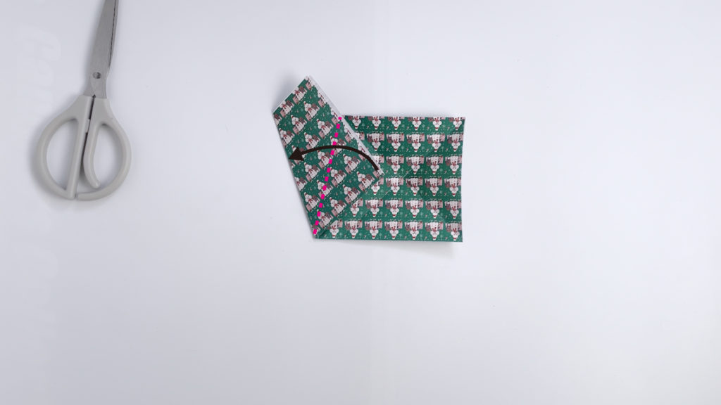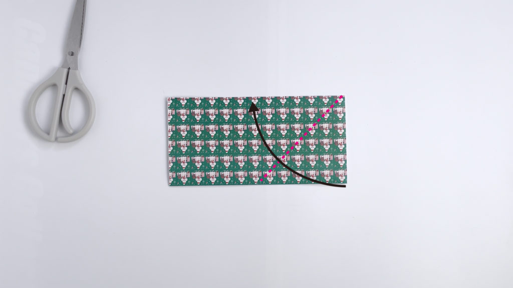 右下の角を上側に折り、元に戻し折り目をつけます。