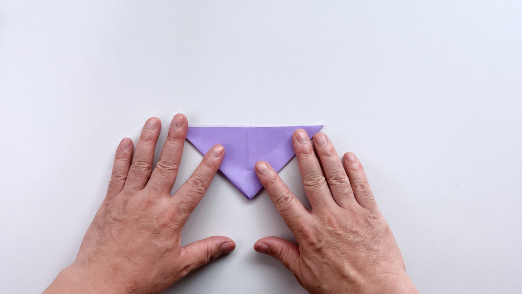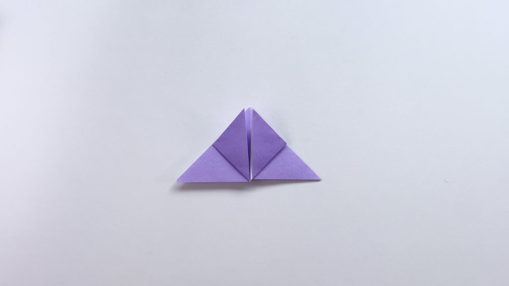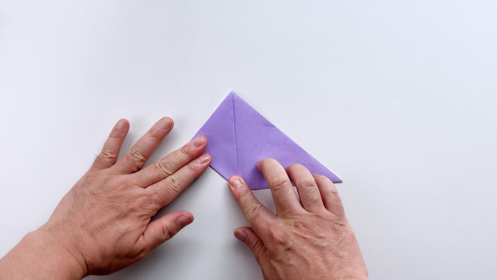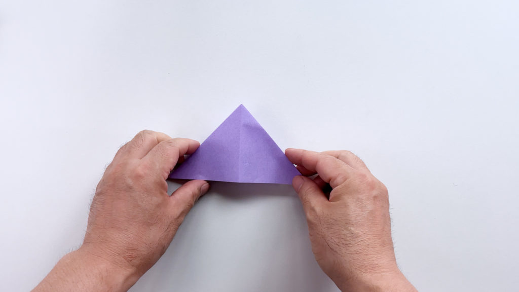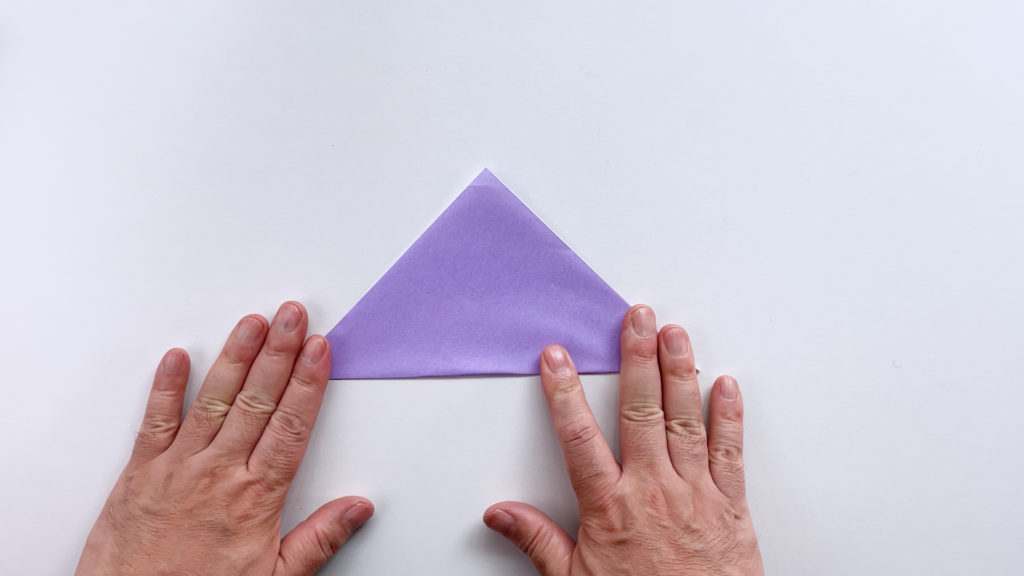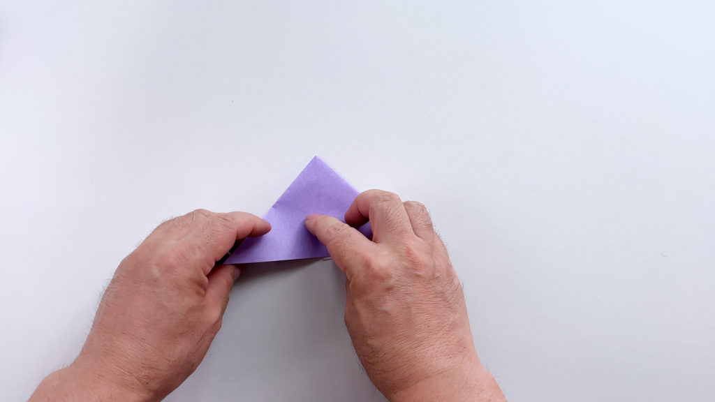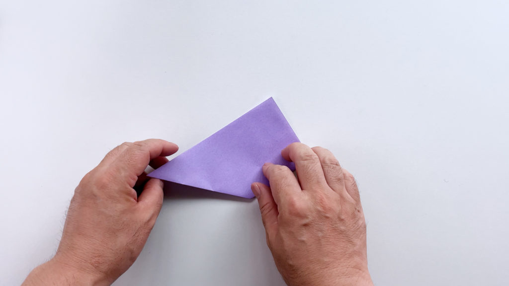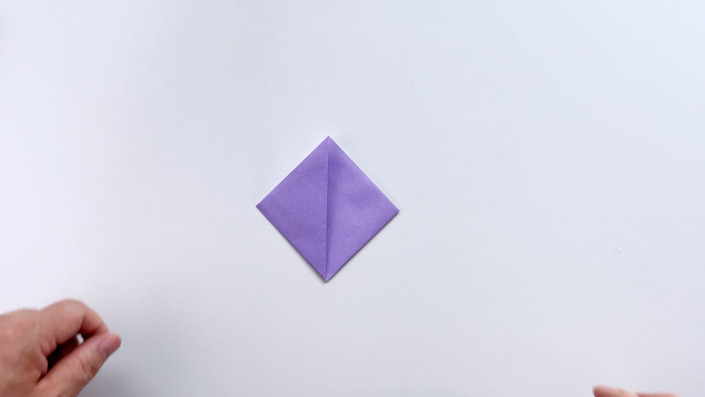 折り紙を対角線で三角に折ります