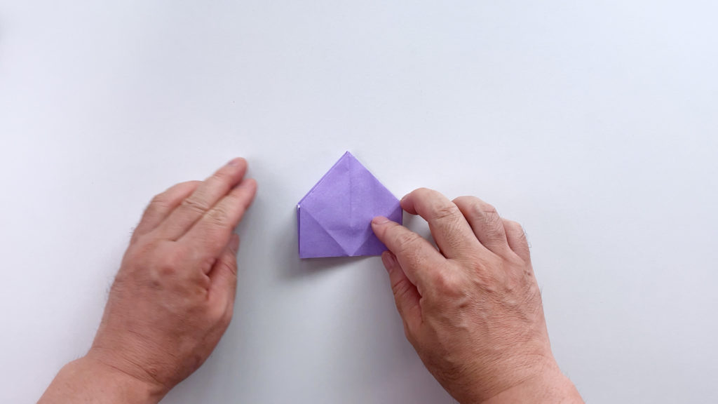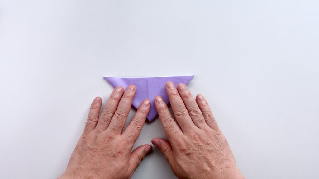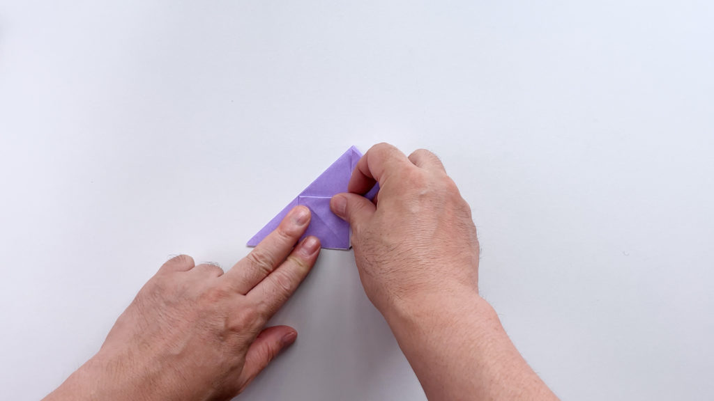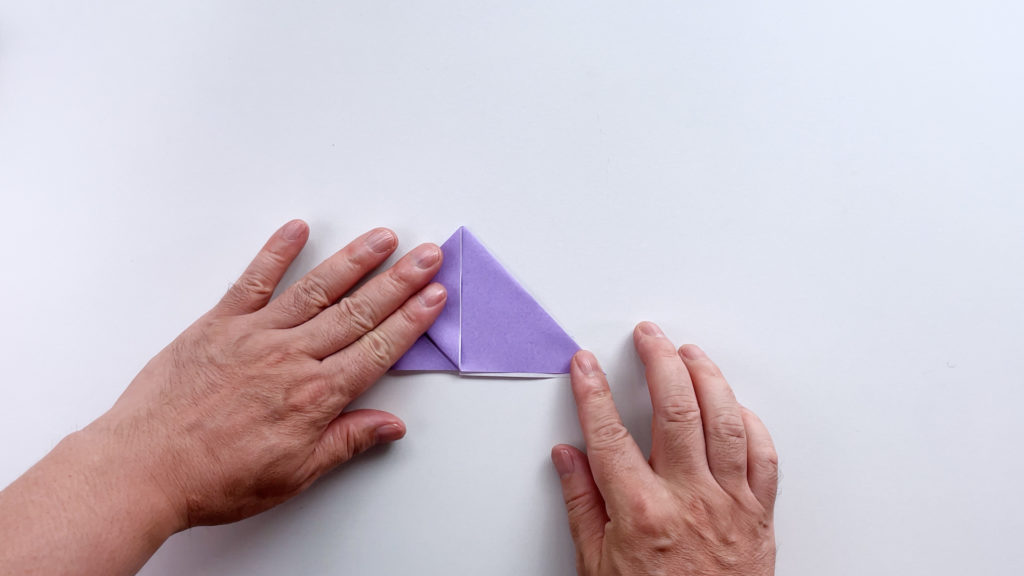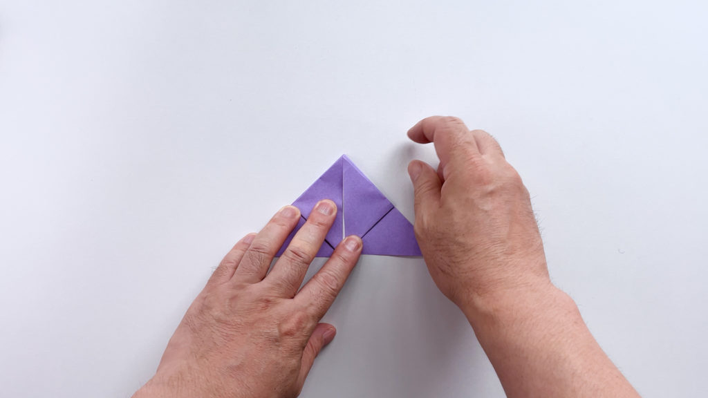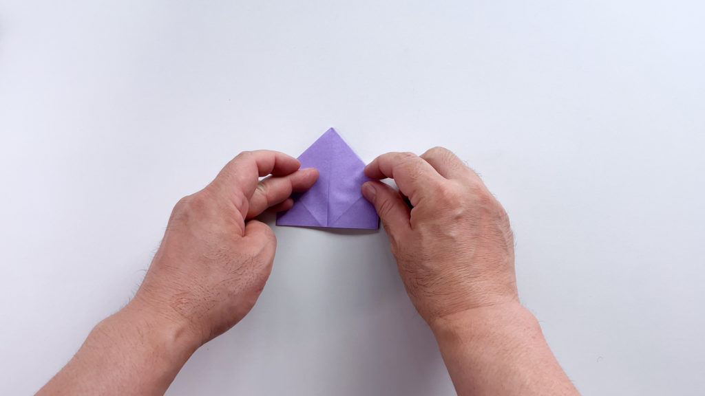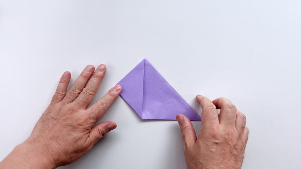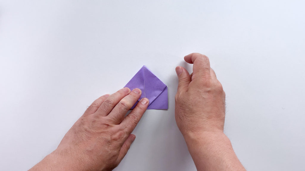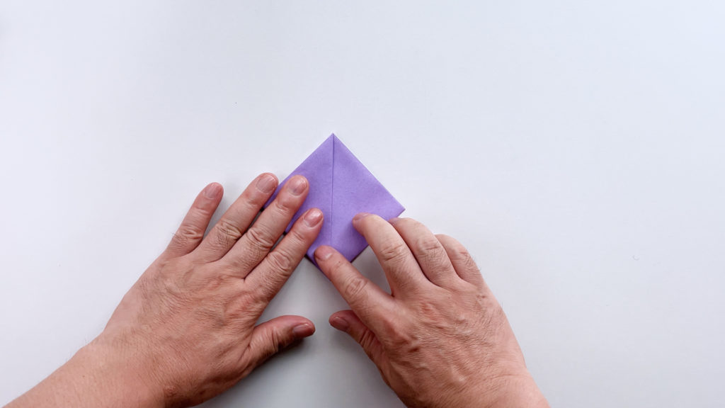 折り紙を対角線で三角に折ります