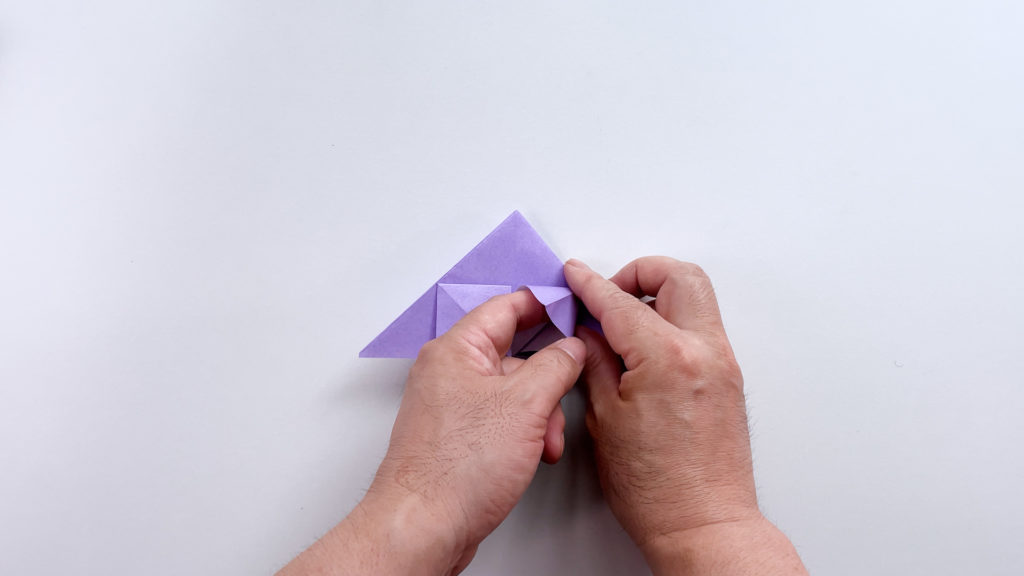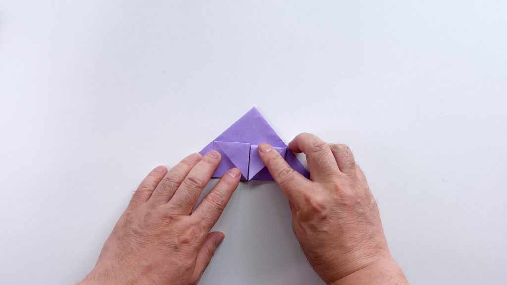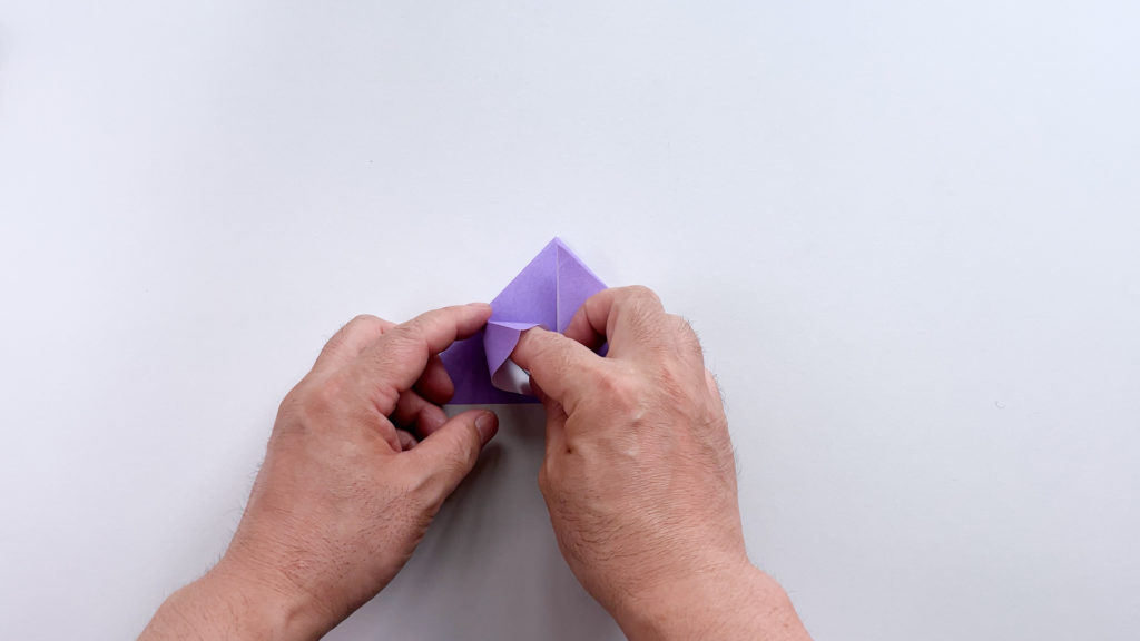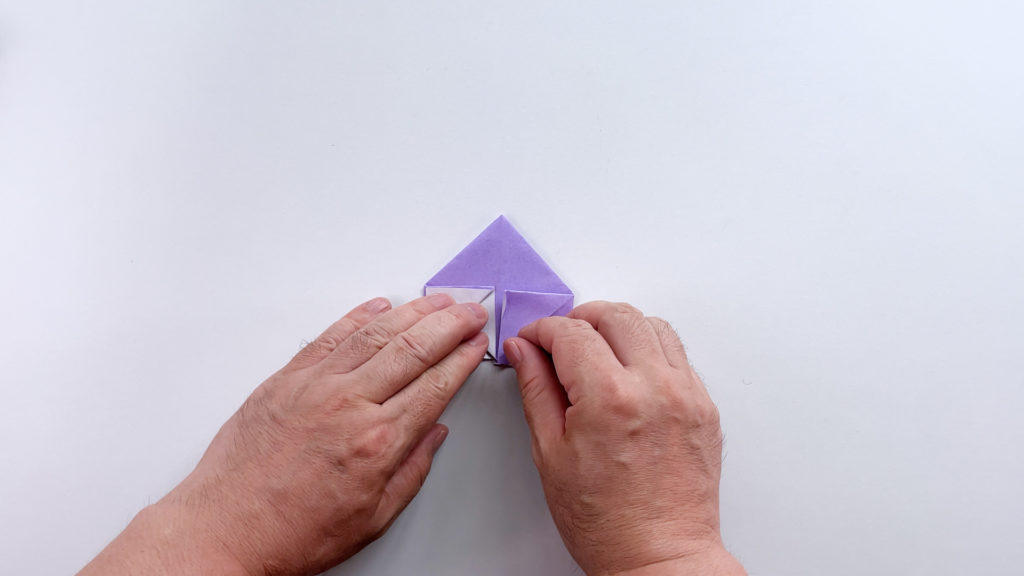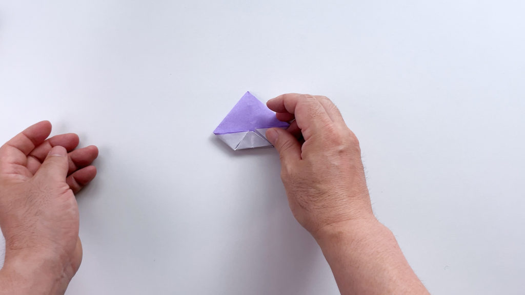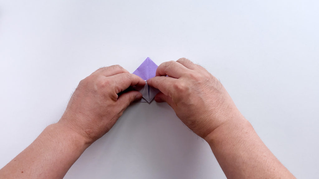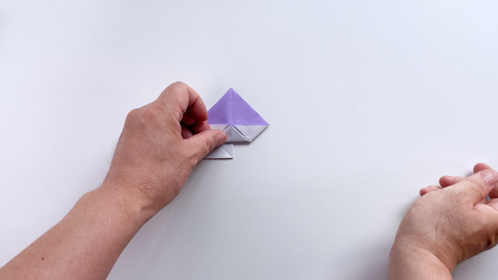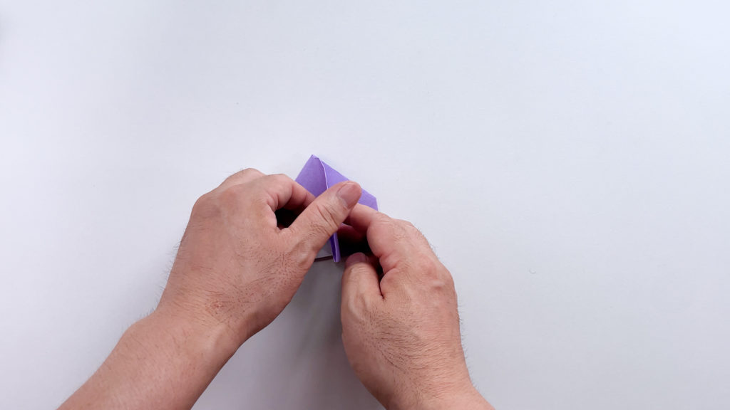 折り紙を対角線で三角に折ります