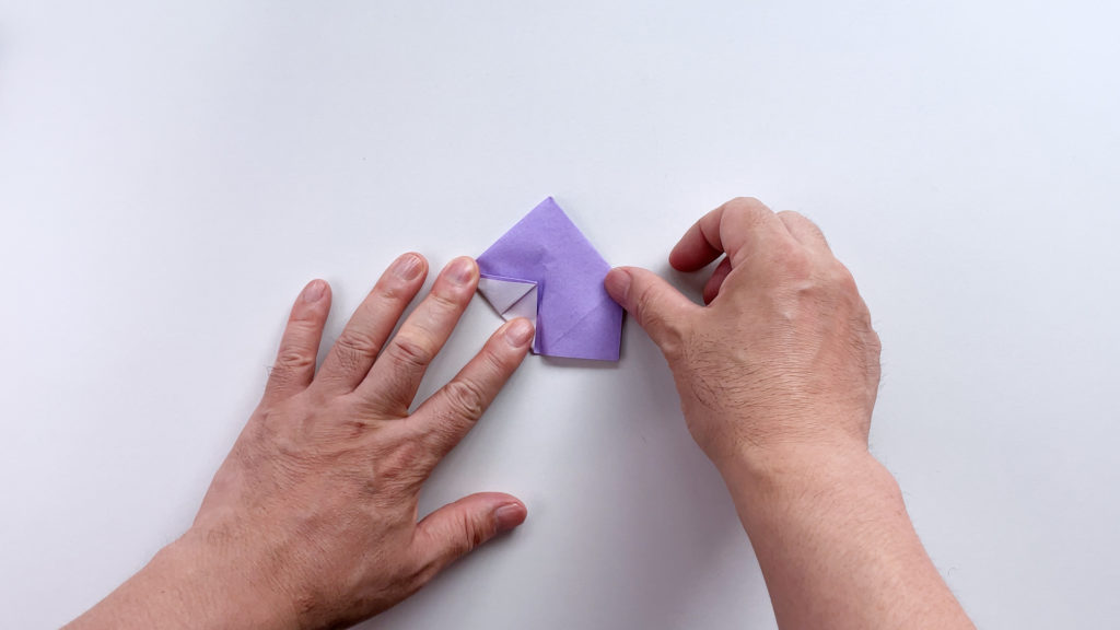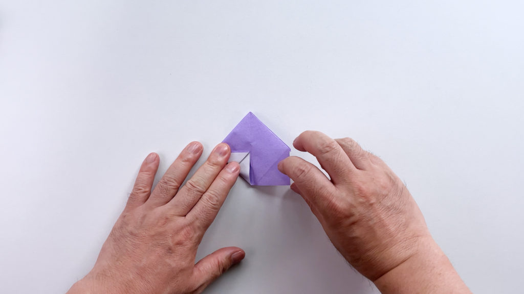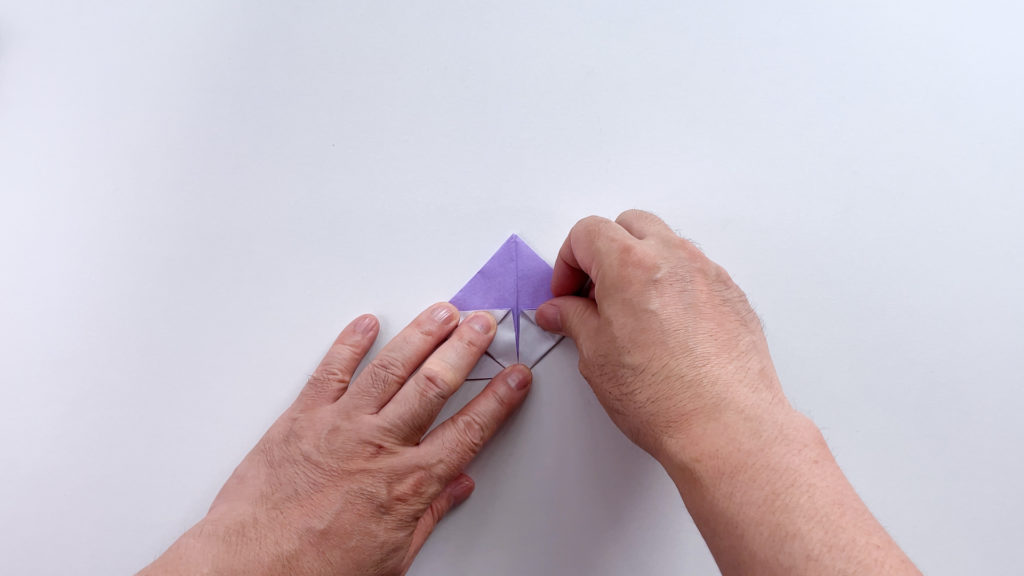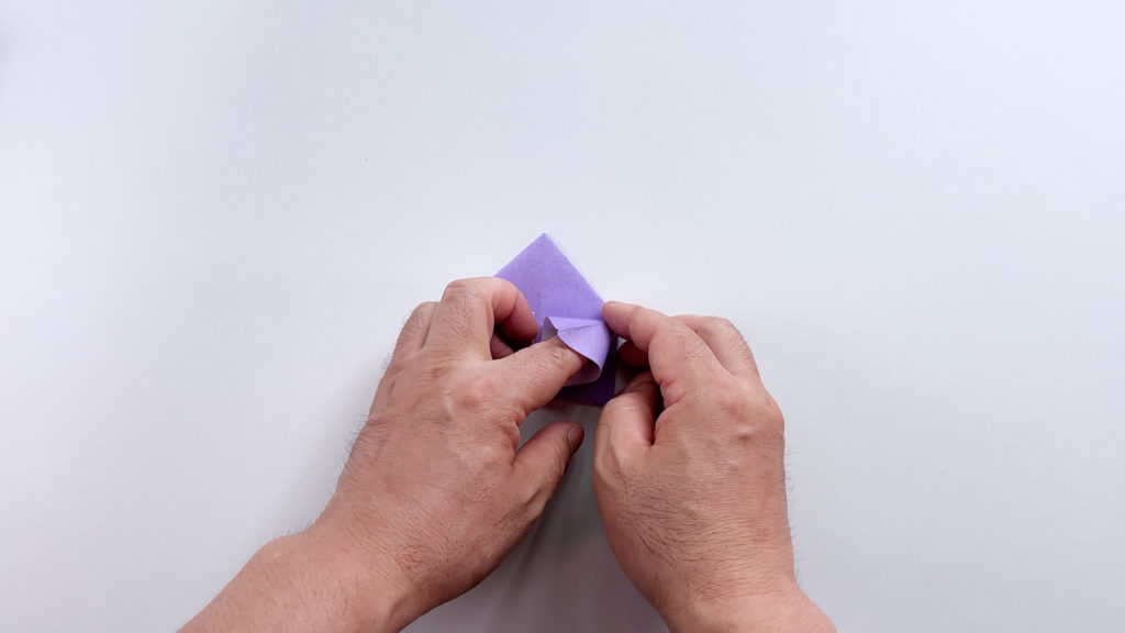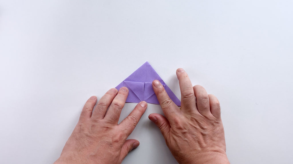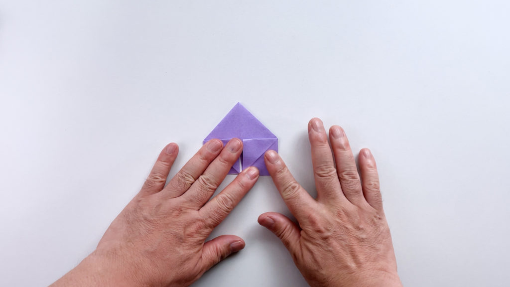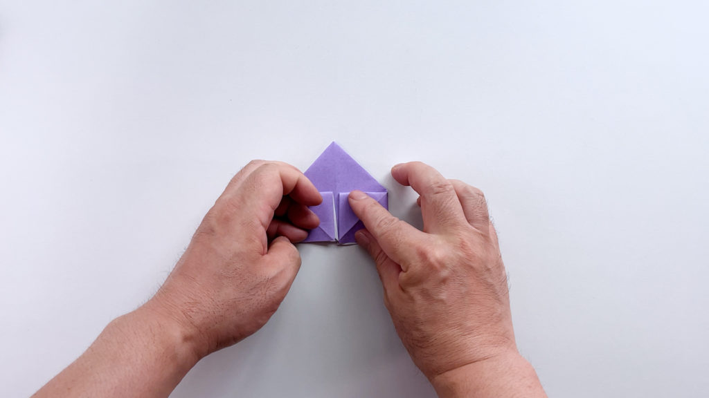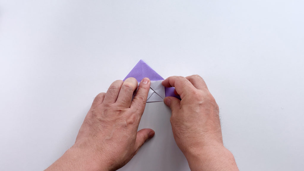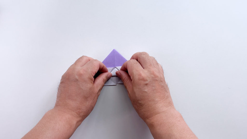 折り紙を対角線で三角に折ります