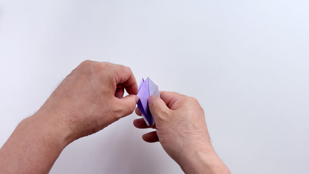 全ての面を同じように折ったら、底を開きます