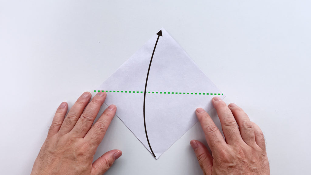 点線で矢印の方向に折ります