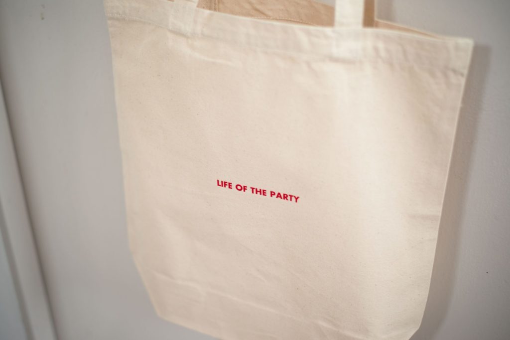 バッグの反対面には、さりげなく**「life of the party」**の文字。